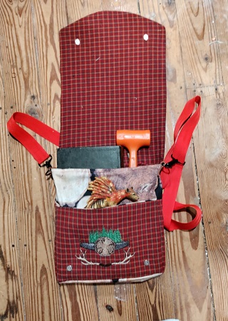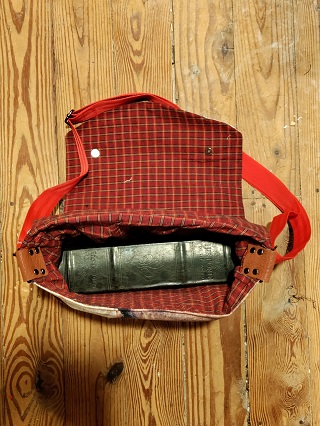 made from reclaimed fabric with a cotton lining.